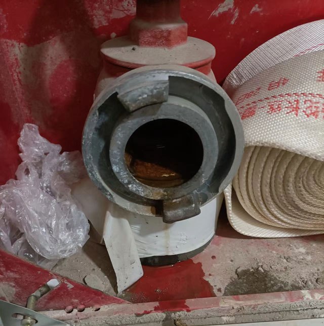 4、檢查水槍、水帶接合器及接口聯接是否牢固、有無缺損。如有,立即修復,然后擦凈,在消火栓內放好;